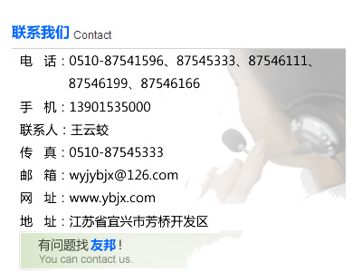 聯系地址:江蘇省宜興市芳橋開發(fā)區(qū) 郵編:214214